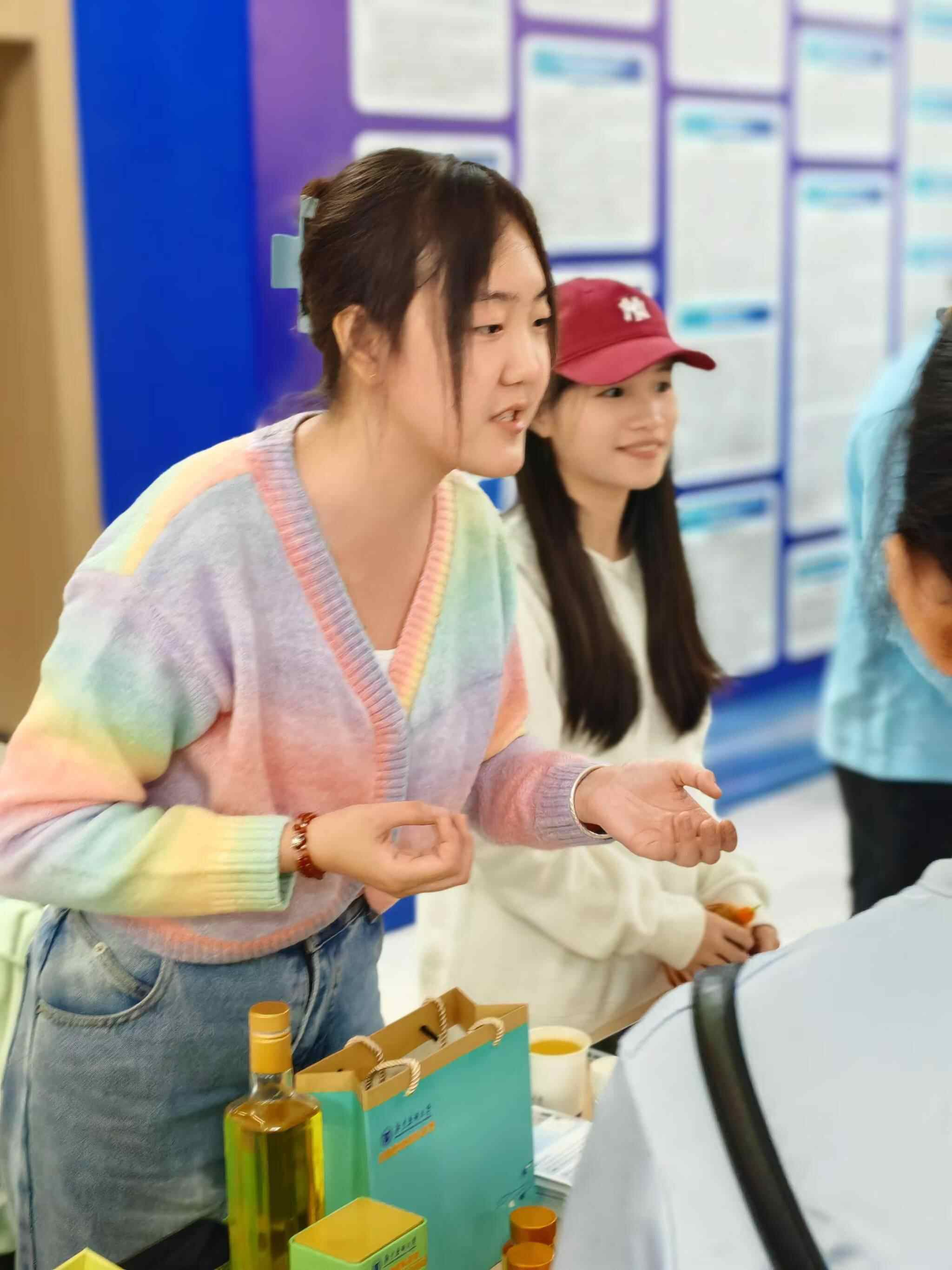 广东药科大学中医药研究所研三学生李欣怡则“老到”很多,大方向企业家和街坊们推荐团队参与研发的文冠果油、文冠果茶等系列产品。文冠果是无患子科植物,其种子风味似板栗,种仁是很有发展前途的木本油料植物,但是存在加工过程中种仁利用率低、资源严重浪费等问题。李欣怡和团队小伙伴们经过上百次实验探索,3次技术突破,实现了文冠果油提取技术的飞跃。当得知文冠果油有健脑功效,可以改善记忆力,参观的街坊们一下子来了兴趣,纷纷索取试用装。